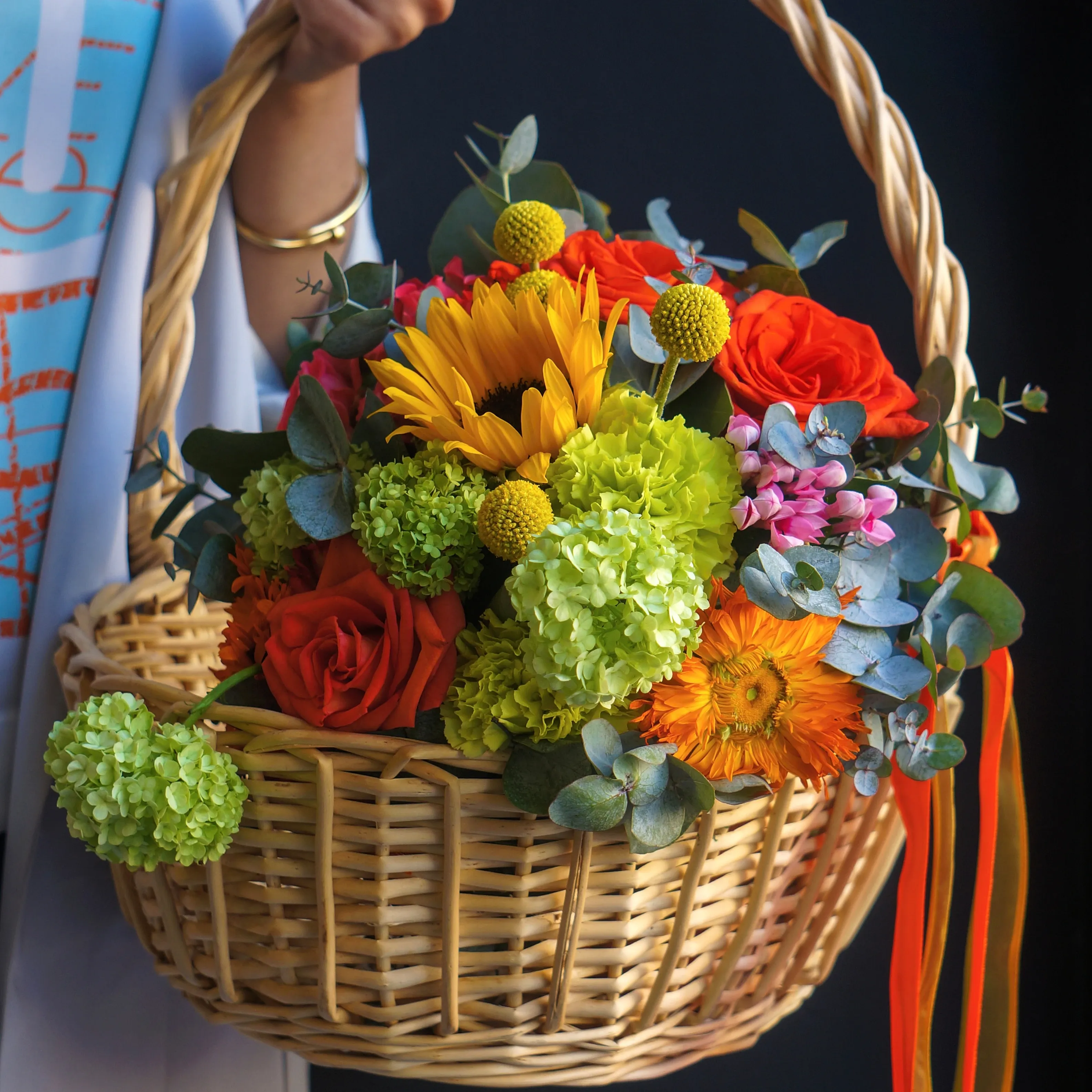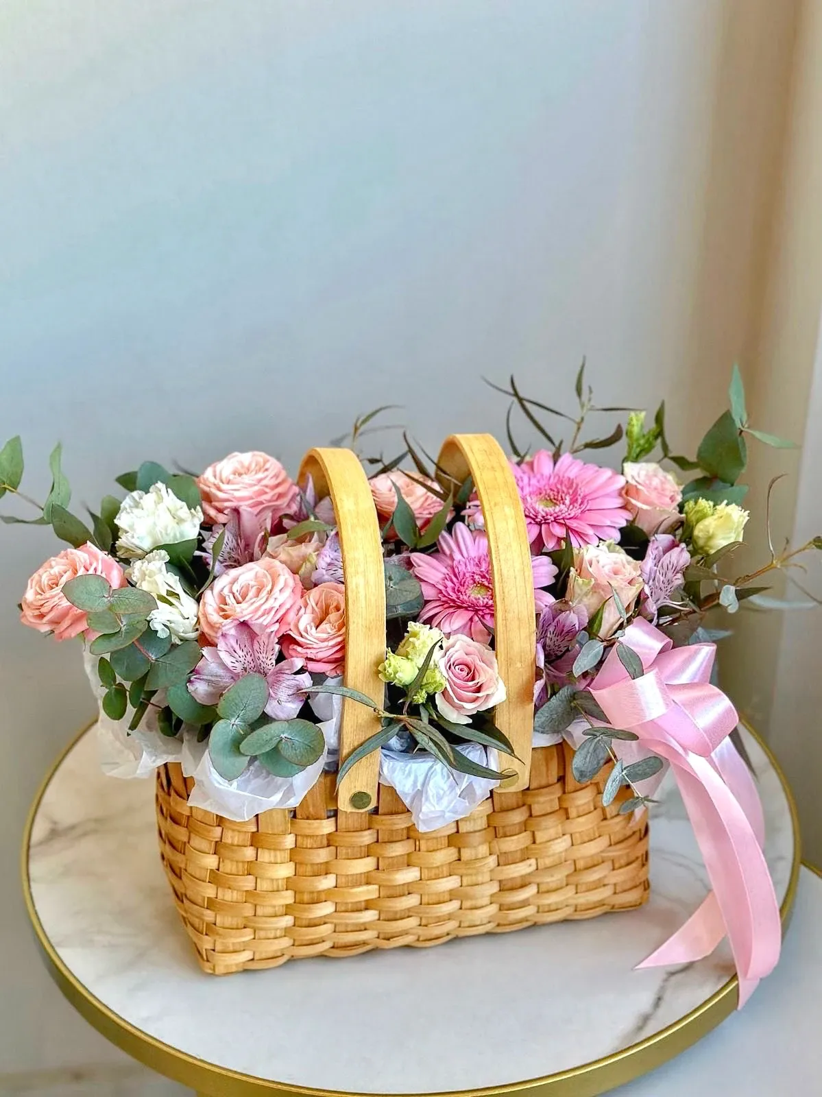 Чтобы заказать цветы в корзине с гипсофилой в Гомеле, обратитесь в FlowLove. Почему выгодно заказывать у нас?