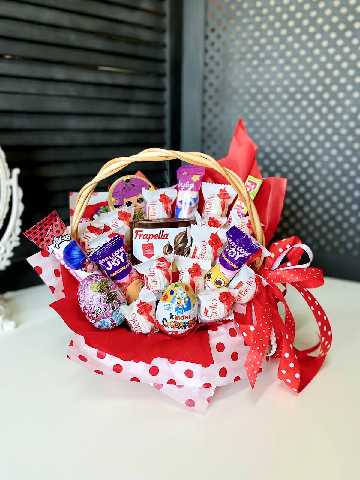 - Выпускной в школе или в детском саду. Небольшие и интересные корзинки с конфетами - отличный сюрприз для выпускников. Маленькие корзины с конфетами - хороший подарок для мальчишек и девчонок в этот важный день.