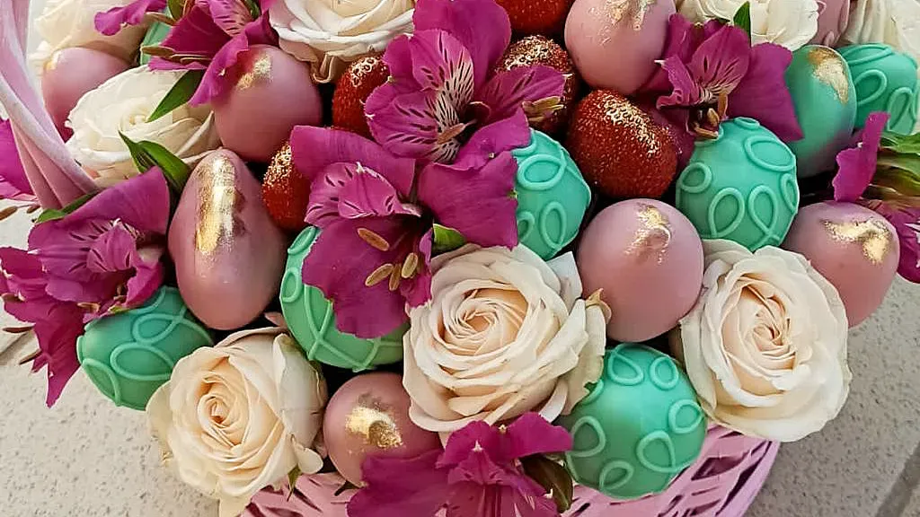 Заказывая клубнику в шоколаде с цветами в корзине в FlowLove, Вы получаете: